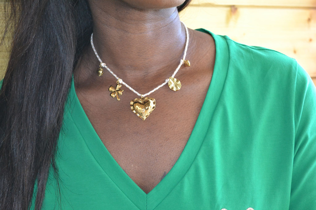 Collier à breloques en acier inoxydable doré