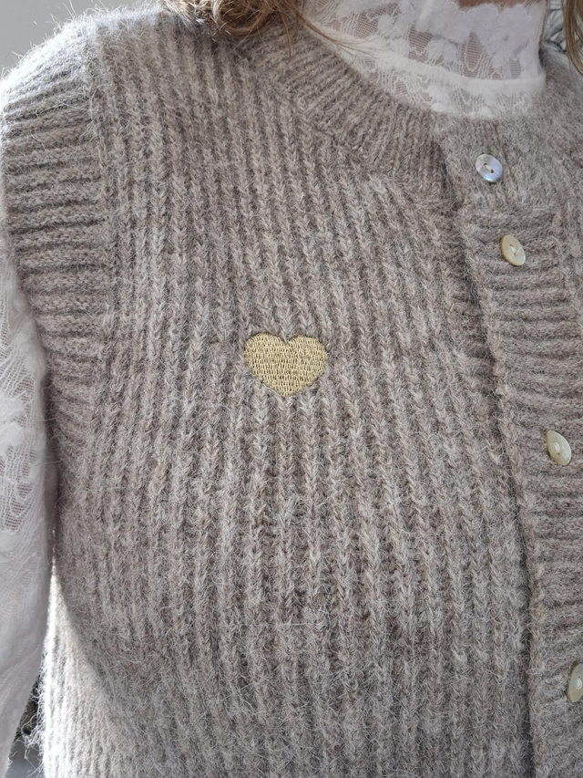 Broderie Coeur doré sur la poitrine droite