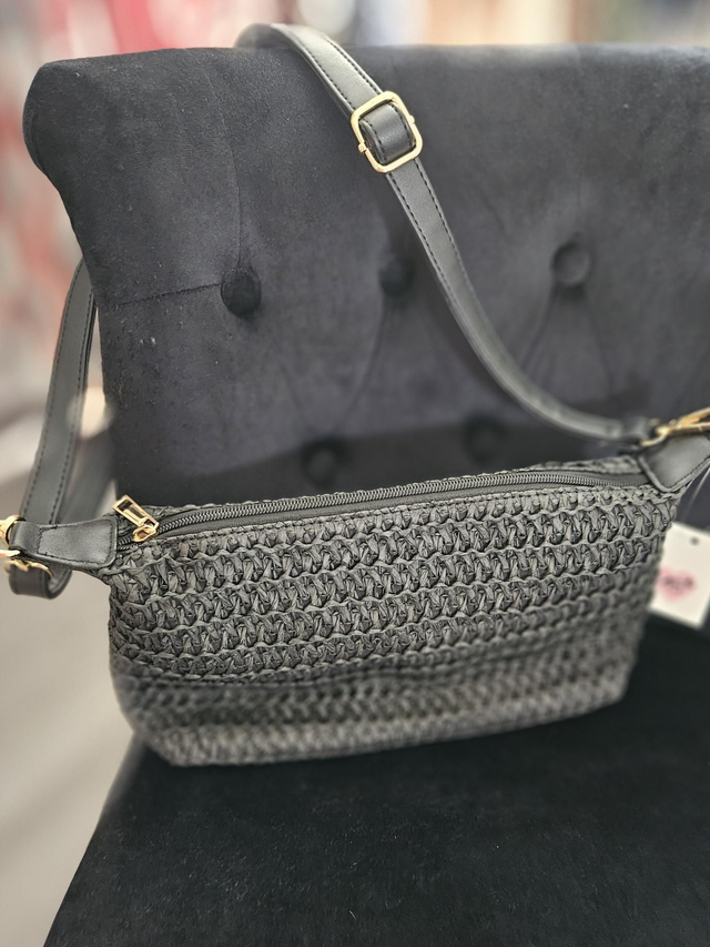 Sac bandoulière noir en paille