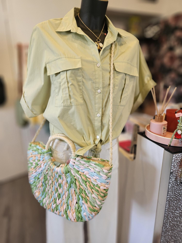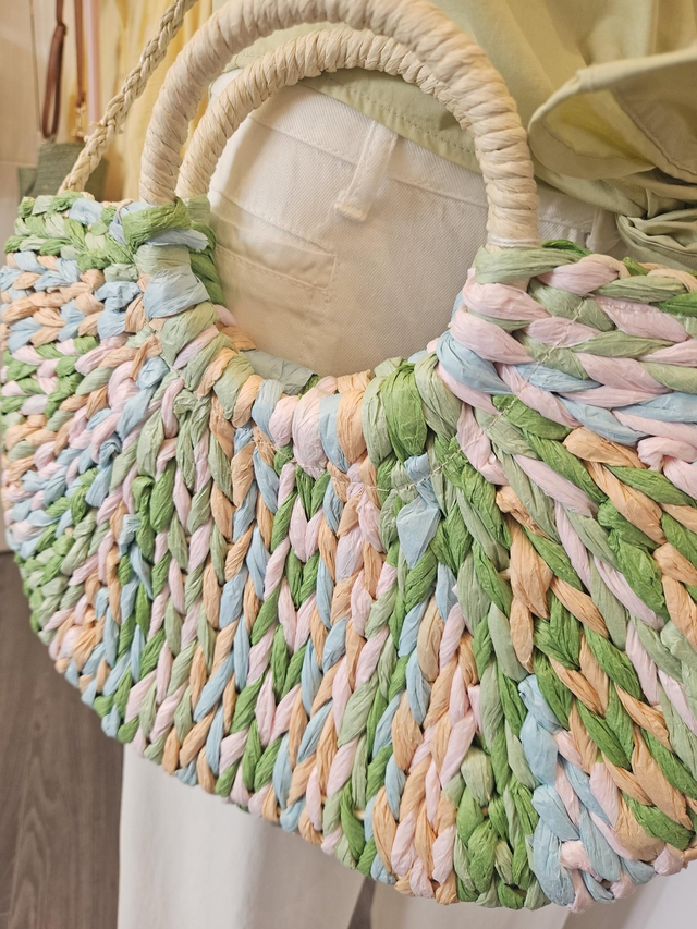 Panier en raphia demi-lune multicolore
